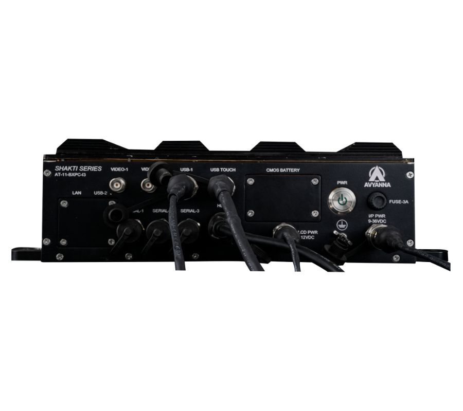 mm, approx. 5 kg with VESA mounting support. 9-36VDC MIL-grade power input (MIL-STD-1275E). Supports Windows and Linux operating systems.